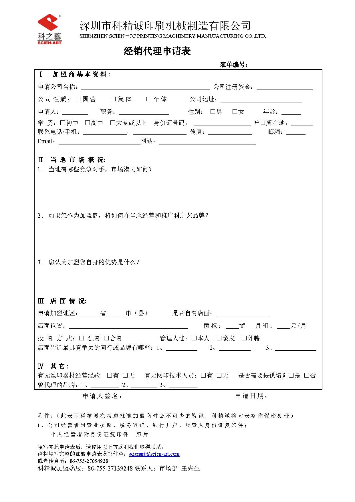 2. 加盟商需有一定的網(wǎng)印設(shè)備背景,具有獨(dú)立為客戶提供服務(wù)的能力。