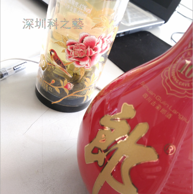 隨著玻璃熱轉印技術的不斷改進,酒瓶熱轉印變得可能。熱轉印工藝能滿足色彩豐富的外觀裝飾特點,為酒類行業畫上了“濃墨重彩”的一筆。請看下圖: