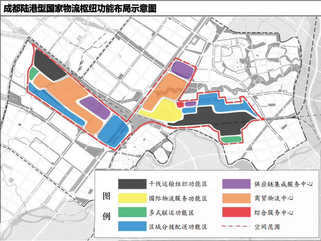 成都陸港型國家物流樞紐選址于成都國際鐵路港,占地11.89平方公里,擁有亞洲最大鐵路集裝箱中心站,以打造“蓉歐樞紐”為目標,服務于適歐適鐵產業需求為導向,總體形成“四區三中心”功能格局,于2019年入選全國首批國家物流樞紐建設名單。成都陸港樞紐的獲批對成都在新一輪西部大開發建設中具有重大意義,通過深入實施“蓉歐+”發展戰略,依托金青新大港區拓展國際國內兩張網,做強樞紐、節點、腹地、服務四大支撐,進一步提升和鞏固成都西部國際門戶樞紐地位,充分釋放成都對西部地區經濟發展的帶動效應。
